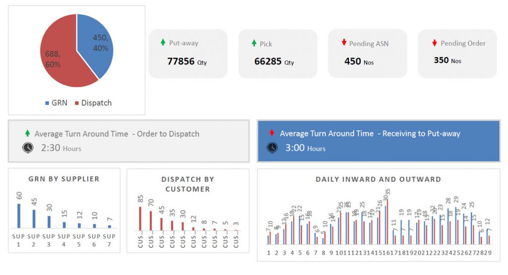 Digitized warehouse data can be utilized for smart analytics. The data collected by PALMS™ is used to create data visualization reports and actionable insights for decision makers.