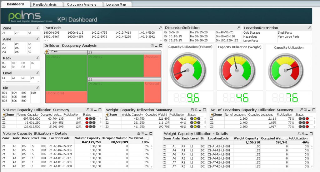 PALMS™ Analytics – PALMS™ supports BI and Analytics reporting tools. Technoforte has a ready Analytics wrapper built on Qlik and can also be made available on Microsoft Power BI tool. PALMS™ Analytics is available on SaaS and requires additional 3rd party Qlik Licenses and Hosting capabilities. PALMS™ Analytics ‘out of the box’ Dashboards presentation is attached as an annexure along with this proposal. The dashboards cover visual analytics of Throughput, Location Utilization, Planned v/s Actual Receipts, Put Away Details, Put Away Performance, Put Away Quality Monitoring, Put Away Turnaround Time, Planned v/s Actual Dispatch, Dispatch Details, Pick Performance, Pick Turnaround Time, Vehicle Turnaround Time and Detention Analytics. The digital transformation of the warehouse enables instantaneous access to many insightful metrics.